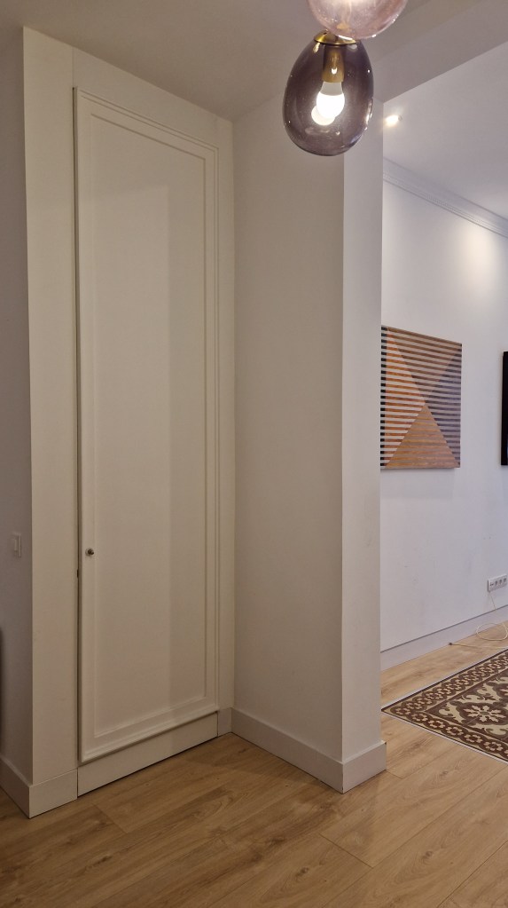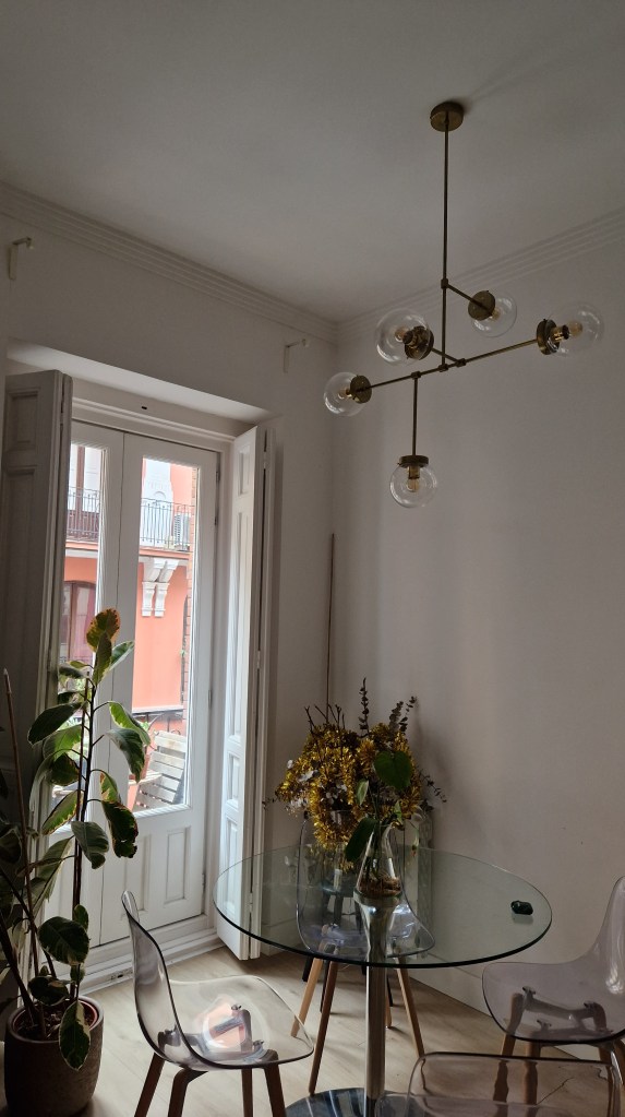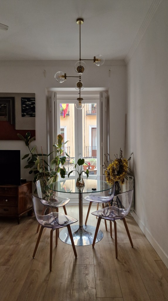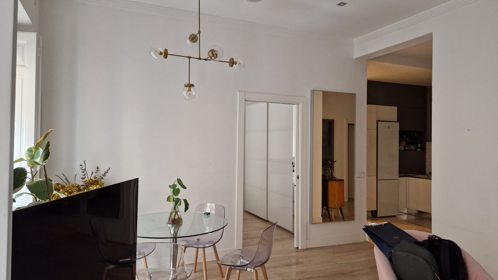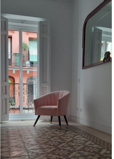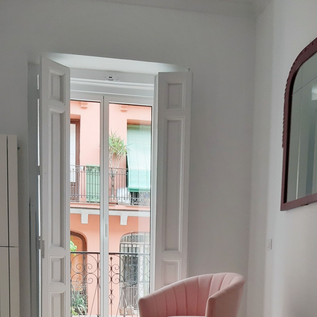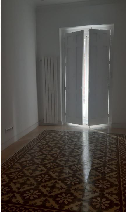 Reforma integral de piso en edificio típico de Lavapiés, estructura de madera y balcones “madrileños”.